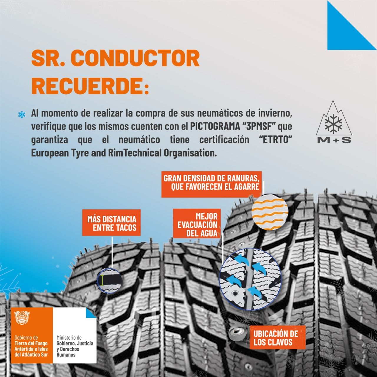 Por su parte, desde la Subsecretaría de Seguridad Vial brindaron información acerca de los neumáticos acordes para las condiciones climáticas durante la temporada invernal.