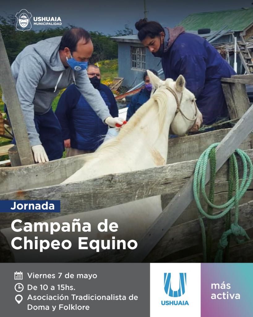 Ushuaia 04/05/2021.- La Municipalidad de Ushuaia invita a propietarios y propietarias de caballos de la ciudad a la jornada de chipeo de equinos que se realizará el viernes 7 de mayo, en cumplimiento de la Ordenanza municipal N° 4051 y su decreto reglamentario que establece la obligatoriedad de su identificación.