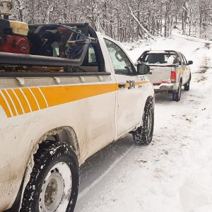 Además, se brindó soporte a Vialidad Nacional en la Ruta N° 3, donde se presentaron algunas demoras en la limpieza de la calzada producto de las intensas nevadas.