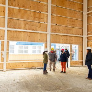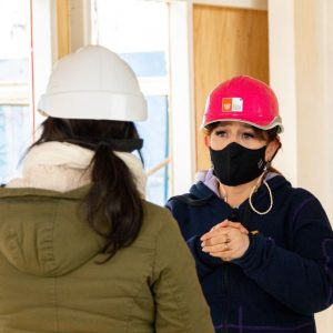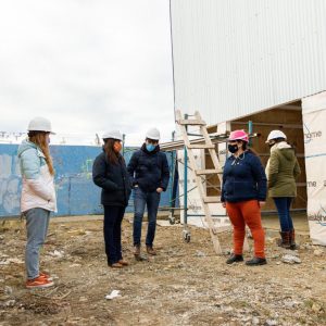 Rio Grande 05/06/2021.- La ministra de Obras y Servicios Públicos de la provincia, Gabriela Castillo, recorrió los avances de la obra que se lleva adelante en el nuevo SUM destinado a las Escuelas N° 20 “Ángela Loij” y N° 26 “Senadores Fueguinos”, de Río Grande.