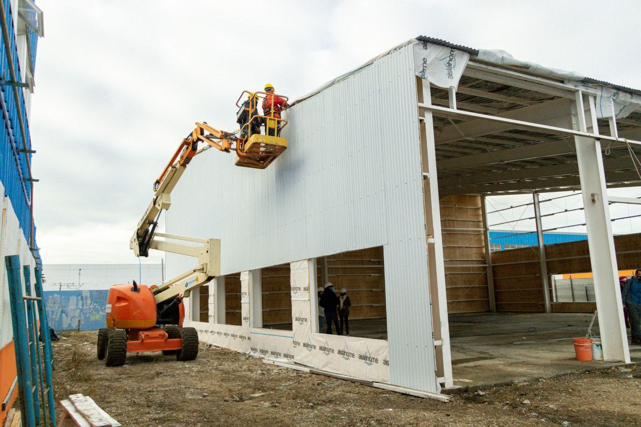 En el lugar se realizó el techado, la cubierta de paredes mediante placas, aislantes y chapa; y la empresa continúa trabajando en el cerramiento total del espacio.