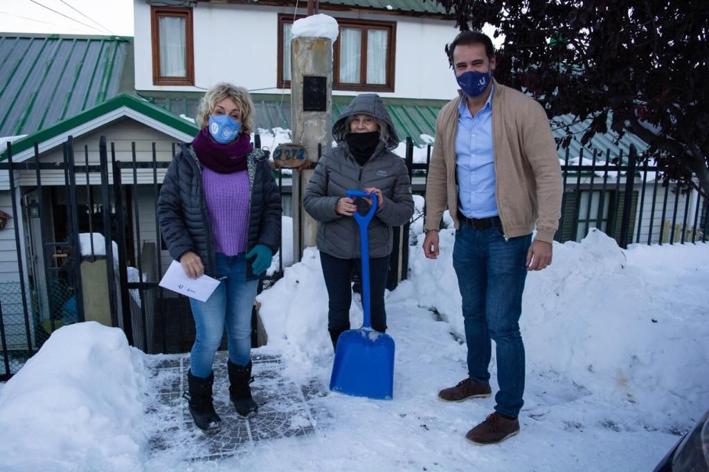 “Para mí fue muy emocionante poder conversar con una vecina muy comprometida con la ciudad, como es Stella, a quien encontramos limpiando su vereda y sacando toda la nieve para tener una vereda en condiciones. Stella estaba feliz de recibir su tarjeta +U, por lo que pudimos charlar sobre los beneficios de este programa, que está moviendo la economía local, pese a las dificultades que atraviesa el comercio” expresó Calderón.