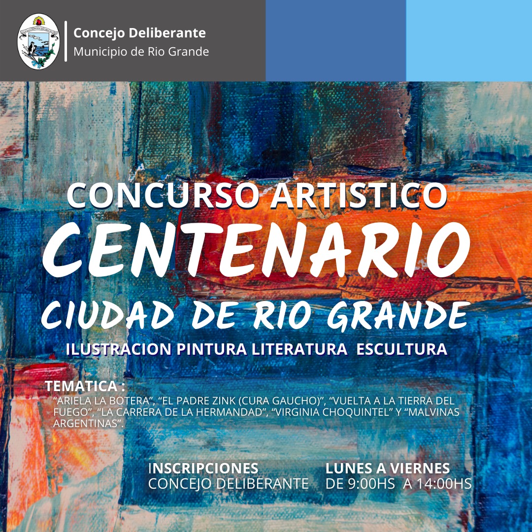Río Grande.- El Concejo Deliberante informa a la comunidad riograndense que la entrega de los trabajos para el ‘Concurso de Ilustración, Literario y Escultura’ “Centenario de la Ciudad de Río Grande” se extendió hasta el próximo 31 de julio.