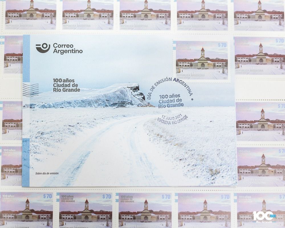 Tras su presentación, se pone en circulación este sello postal, que representará en nuestro país y en el mundo a nuestra ciudad centenaria. Al respecto, Ferro detalló que “es una emisión especial conmemorativa por los 100 años de Río Grande que se compone de 3 elementos. Uno es el sello postal, el que comúnmente llamamos estampilla, tiene la imagen particular y representativa de la historia de la Ciudad y de estos 100 años, como es la Misión Salesiana”. En este sentido, indicó que “también está acompañada de un sobre postal que está ilustrado con una imagen de nuestro Cabo Domingo, un punto que es muy característico de Río Grande».