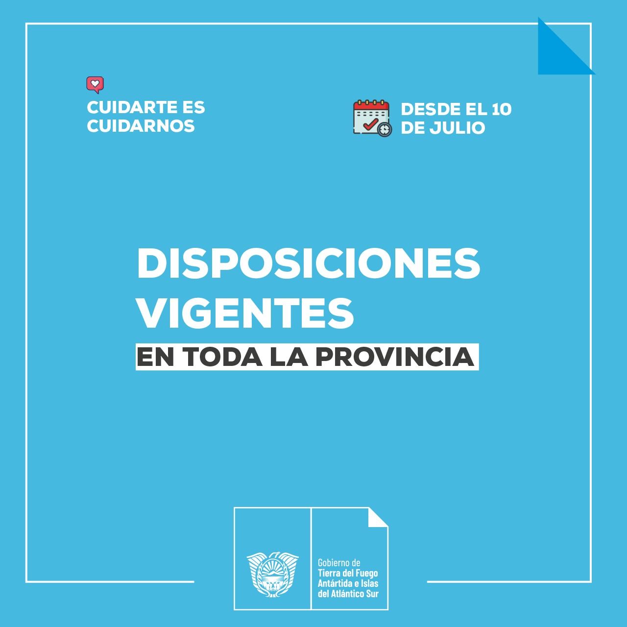 Rio Grande 10/07/2021.- El Gobierno de la Provincia prorrogó las disposiciones actuales por lo que las medidas siguen vigentes hasta el 6 de agosto. Esto es de acuerdo a la aplicación de los parámetros dispuestos para definir el riesgo epidemiológico y sanitario por el Poder Ejecutivo Nacional, donde Tierra del Fuego se encuentra dentro de Riesgo Epidemiológico y Sanitario Medio.