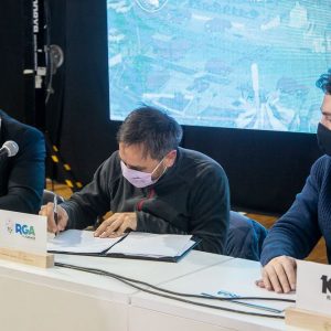 Martín Perez, Walter Vuoto, y Daniel Harrington firmaron un importante convenio con el Ministro de Ambiente y Desarrollo Sostenible de la Nación, Juan Cabandié. El mismo es en el marco de un proyecto integral de gestión de residuos con financiamiento del BID, para los tres municipios de la provincia, que incluye la implementación de una planta de clasificación de los residuos que mejorará la gestión y su disposición final.