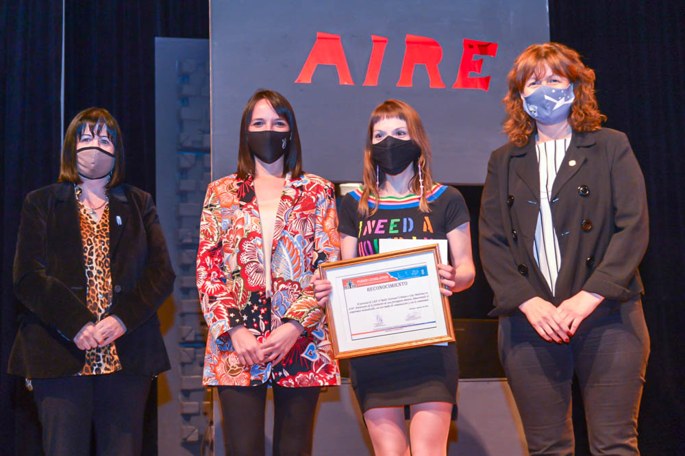 Durante el acto, las autoridades legislativas entregaron a la directora de Radio Nacional Ushuaia, técnica Superior en Periodismo, Luz Scarpati, un reconocimiento especial al personal de la emisora que ha “demostrado el compromiso inclaudicable con este medio de comunicación y con la comunidad”.