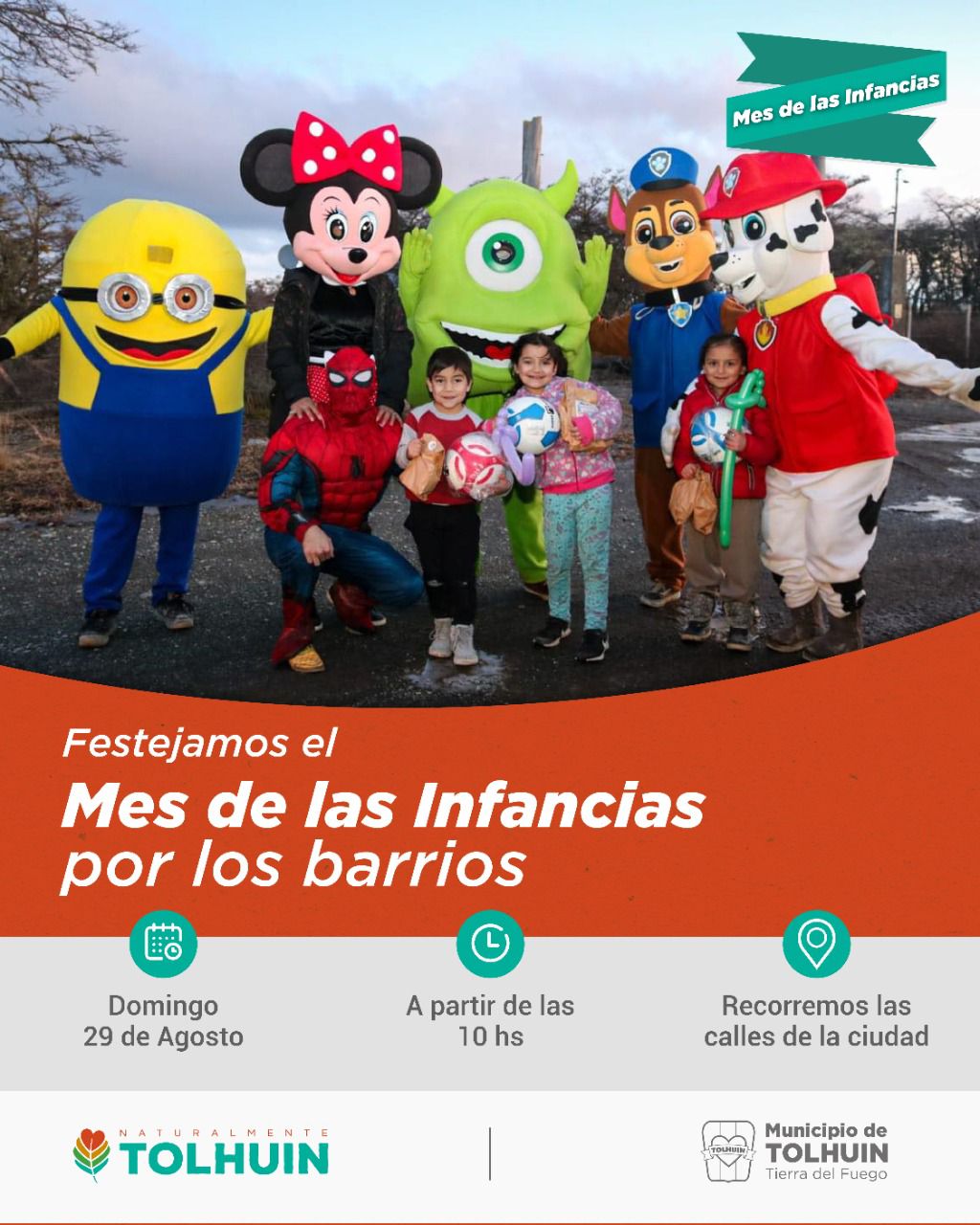 Este domingo 29 de agosto a partir de las 10hs el Municipio junto a colaboradores recorrerán las calles de la ciudad en dos caravanas con la visita de personajes infantiles, golosinas y sorpresas para las y los más pequeños del hogar.