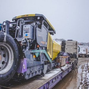 “Entre la gama de productos para la construcción de carreteras, adquirimos el modelo AFT400-2 que tiene un peso de operación de 10,5 toneladas, se desplaza sobre orugas, está propulsado por un motor Deuz de 2.9 litros con una potencia de 55kw. Esta máquina permite realizar carpetas asfálticas de espesor variable, tiene una capacidad de avance en producción de 25 metros lineales por minuto, en los que va depositando una carpeta asfáltica gracias a una cuba de 10 tn de capacidad que le va suministrando el material para realizar la carpeta ”, detalló el Ing. Videla.