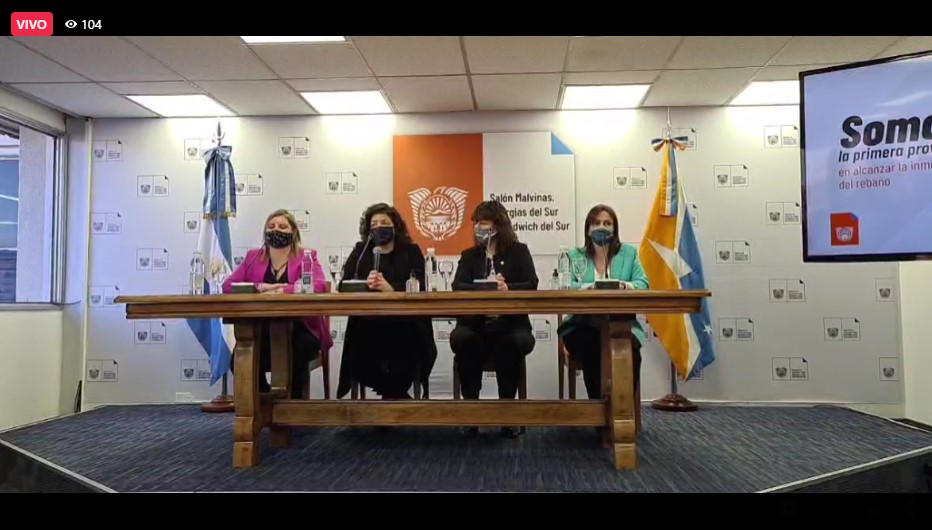 Lo dijo la Ministra de Salud de la nacion en Conferencia de prensa en Casa de Gobierno hoy, junto a la Ministra de Salud de la Provincia Judith Di Giglio y la Vicegobernadora, Monica Urquiza. La funcionaria nacional agradeció el trabajo realizado para lograr l a inmunidad de rebaño y dijo que Argentina es ejemplo en Latinoamérica y Tierra del Fuego ejemplo en Argentina.