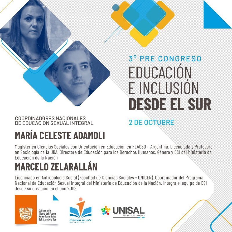 Recordamos que esta conferencia, es la última de una serie de pre congresos previos al IV Congreso Internacional Educación e Inclusión desde el Sur que se desarrollará en el mes de noviembre, disertados por diferentes y reconocidos especialistas en educación.