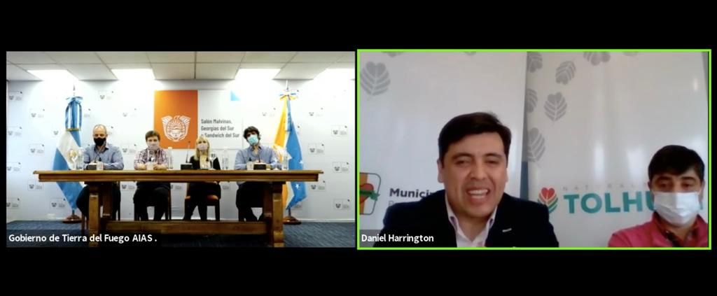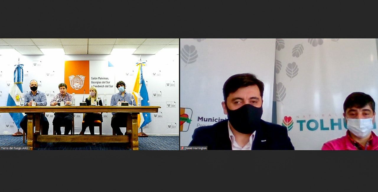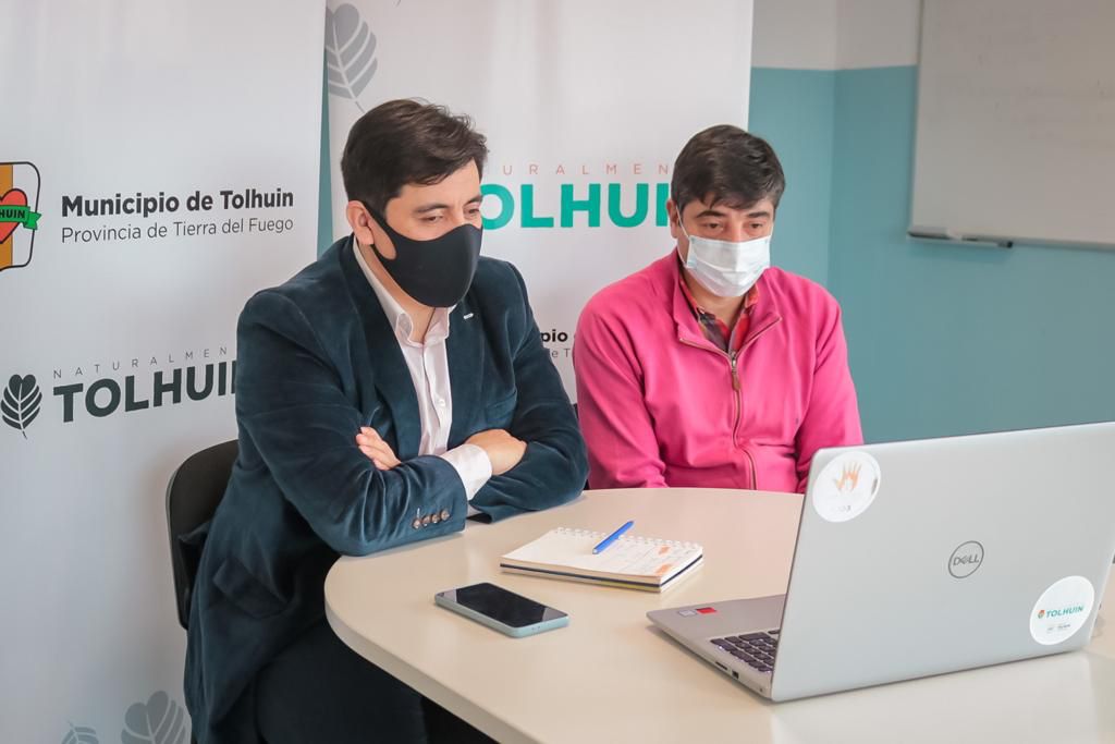La firma encabezada por el Gobernador Gustavo Melella, junto al Presidente del Instituto Fueguino de Turismo, Dante Querciali, la Vicepresidenta de la Dirección Provincial de Vialidad, Ileana Zarantonello, y representantes de la empresa constructora “Dos Arroyos”, contó con la presencia vía zoom del Intendente de Tolhuin Daniel Harrington y el Secretario de Planificación y Desarrollo Urbano del Municipio de Tolhuin, Arq. Carlos Bargetto.