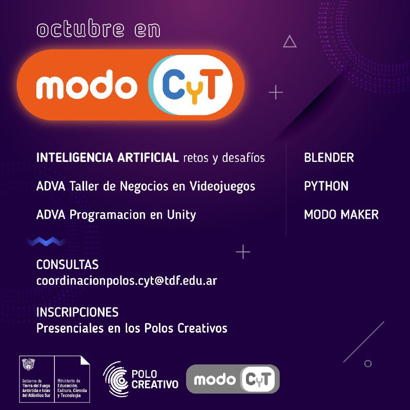 Para más información, podrán enviar un email a coordinacionpolos.cyt@tdf.edu.ar o contactarse con Modo CyT al (2901)15 52 28 85 de Ushuaia o al (2964)15 69 85 8 (únicamente Whatsapp) de la ciudad de Río Grande.