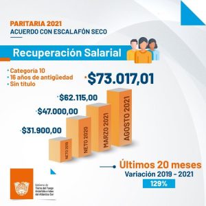 Rio Grande 01/09/2021.- Este es el detalle del acuerdo logrado, desde el diálogo y el consenso junto a los gremios de ATE, ATSA y UPCN, correspondiente al segundo semestre del año.