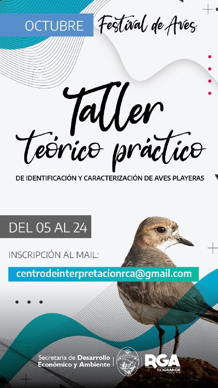El Municipio de Río Grande, a través de la Secretaría de Desarrollo Económico y Ambiente, invita a los vecinos y vecinas a sumarse al taller Teórico – Práctico de “Identificación y Caracterización de Aves Playeras”, que se llevará adelante en el Centro de Interpretación Ambiental desde el 5 hasta el 24 de octubre.