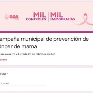 Una vez completado el formulario, serán contactados por personal de salud para coordinar un turno. Cabe recordar que el objetivo de esta campaña es realizar 1000 controles y 1000 mamografías a mujeres y diversidades sin cobertura médica de 40 a 69 años de edad ya menores de 40 años con factores de riesgo como antecedentes familiares de cáncer de mama o persona con patología mamaria como nódulos o lesiones de mama. De esta manera, el Municipio define como prioridad identificar tempranamente alguna situación de riesgo, reafirmando como ejes claves de la Gestión Municipal la promoción y la prevención de salud.