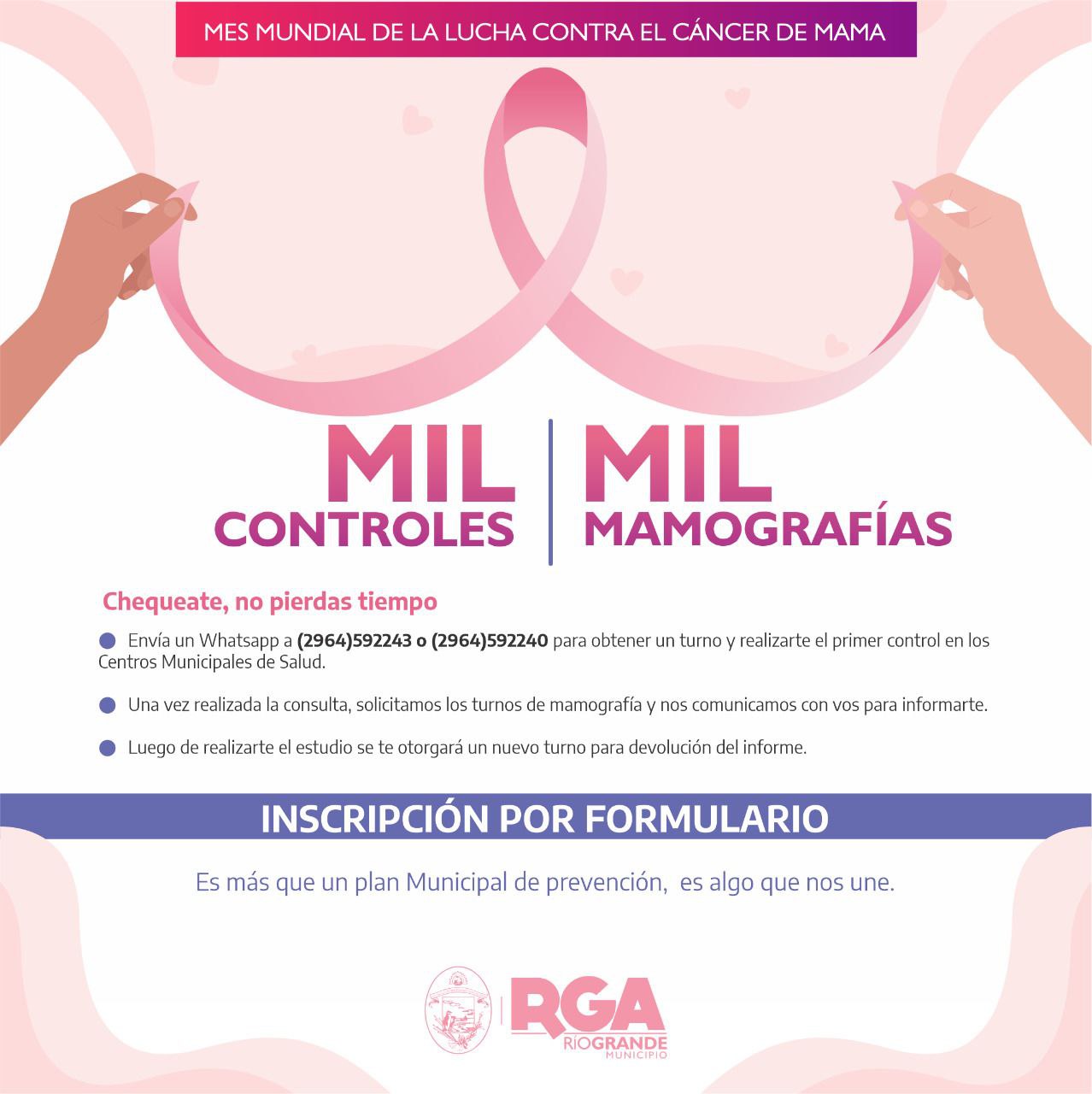Rio Grande 10/10/2021.- El Municipio de Río Grande, a través de la Secretaría de Salud, informa que se habilitó el formulario https://forms.gle/qe5b4qiQmprRwcpv9 para las mujeres y diversidades interesadas en acceder a los controles y mamografías.