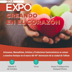 En simultáneo, a partir de las 16hs, en el anexo del Polideportivo tendrá lugar la 2° Expo “Creando en el Corazón” con artesanos, manualistas, artistas y gastronómicos exponiendo para la compra de sus productos.