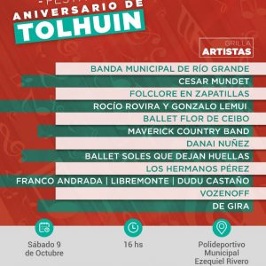 Tolhuín 08/10/2021.- Tolhuin cumple un nuevo aniversario y este año se celebra con diferentes actividades que tendrán lugar el día sábado 9 de Octubre y se extenderán durante todo el mes.