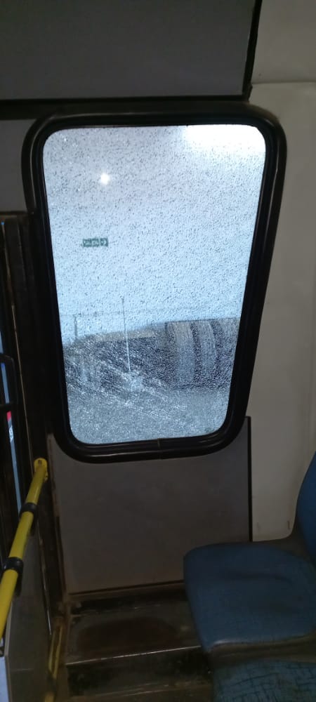 El chofer a cargo del coche, de apellido Nuñez, señaló que la rotura se registró en el último vidrio del lado derecho con un objeto contundente.