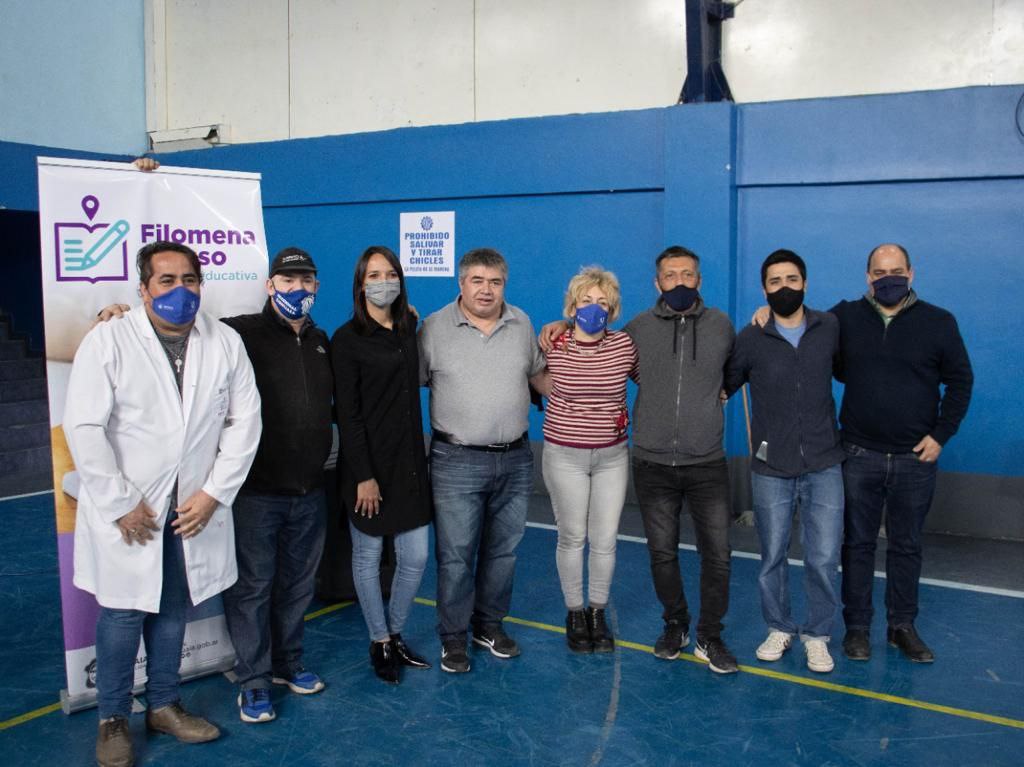 En la inauguración estuvieron presentes la Secretaria de Cultura y Educación, María José Calderón, la Legisladora Victoria Vuoto, el Secretario General de la UOM, Héctor Tapia, Marcelo Castronuovo, Sec. Administrativo de la UOM, docentes, auxiliares y colaboradores del punto del programa. La Secretaria de Cultura y Educación, María José Calderón dió la bienvenida a las y los niños con sus familias, que se acercaron a recibir las mochilas y kits para formar parte de este programa, que en este punto, se brindan clases a más de 35 niños y niñas, de lunes a jueves de 10 a 12 hs. Y de 14 a 16 hs. La funcionaria llevó a las familias metalúrgicas el saludo del Intendente Walter Vuoto y agradeció el acompañamiento del gremio al facilitar el espacio para que hijos e hijas de los trabajadores, niños y niñas del barrio, puedan participar de este programa. “Se vivió un momento muy emotivo y de mucha alegría, porque ver esas caritas felices recibiendo las mochilas, abrazando a sus maestros. Estas son las cosas que marcan a una gestión como la del intendente Walter Vuoto, que es una gestión con mucho corazón. Esto se ve en estos pequeños momentos que podemos compartir con vecinos y vecinas. Cuando terminamos la entrega y los niños vienen a abrazarte y agradecen eso es una síntesis de la política de Walter Vuoto. Cuando uno dice que hay futuro de eso se trata, de esta construcción” destacó María José Calderón. Por su parte, Héctor Tapia, secretario general de la UOM Ushuaia, destacó “la decisión del municipio de Ushuaia de implementar este acompañamiento, que buscar reforzar los contenidos de alumnos y alumnas del primer ciclo, que han tenido un año y medio de pandemia”. El referente gremial garantizó el espacio para que el próximo año el programa continúe en este punto, “tienen las puertas abiertas, estamos muy contentos por colaborar” y manifestó el compromiso de divulgar la iniciativa para que más niños y niñas de la familia metalúrgica formen parte del mismo. La legisladora Victoria Vuoto, agradeció a las autoridades, delegados y delegadas de la UOM el recibimiento, porque «nos abrieron las puertas de su casa, haciéndonos sentir que era también nuestra casa, agradecerles el trabajo y la predisposición para que hoy lleguemos a esta instancia de inaugurar oficialmente este punto Educativo del Programa Filomena Grasso. Agradecerles a las familias por el acompañamiento a los niños y las niñas que, en este contexto de pandemia, puedan reforzar los trayectos educativos”. Asimismo la legisladora manifestó que en la pandemia, muchos de estos niños y niñas, debían aprender a leer y escribir y con este programa lo están logrando, esa fue la decisión del intendente Walter Vuoto, que lo marcó como una prioridad de gestión, más allá de las competencias que le corresponden a los municipios, “tenemos un Intendente que entiende que todo lo que le suceda a los vecinos y las vecinas que viven en nuestra ciudad, es materia de acompañamiento por parte del municipio, todo niño o niña de 6 o 7 años que no puedan aprender a leer y escribir ahora, no sólo son una deuda pendiente, sino que es una deuda con toda la comunidad, porque ellos y ellas son el futuro, la educación es el pilar fundamental para que se puedan desarrollar. Además muy importante que podamos hacerlo en este espacio tan emblemático como es la UOM, porque es un punto que alberga a hijos e hijas de obreros metalurgicos, de trabajadores industriales; y son ellos mismos quienes fabrican las computadoras del Conectar Igualdad y del programa nacional Juana Manso.
