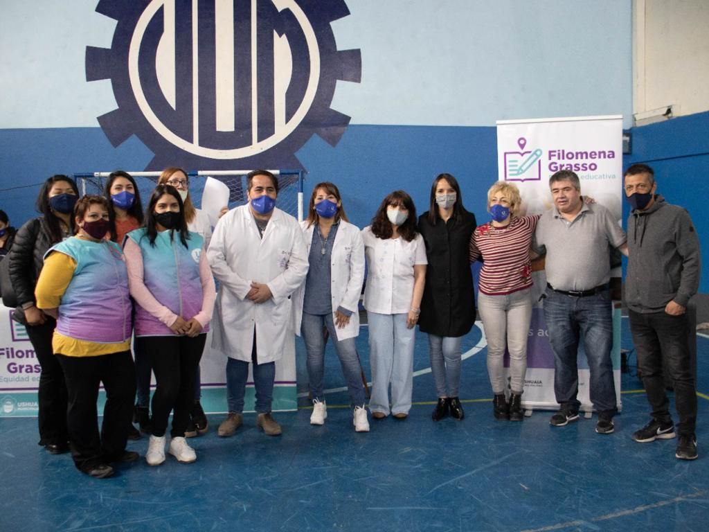 En la inauguración estuvieron presentes la Secretaria de Cultura y Educación, María José Calderón, la Legisladora Victoria Vuoto, el Secretario General de la UOM, Héctor Tapia, Marcelo Castronuovo, Sec. Administrativo de la UOM, docentes, auxiliares y colaboradores del punto del programa. La Secretaria de Cultura y Educación, María José Calderón dió la bienvenida a las y los niños con sus familias, que se acercaron a recibir las mochilas y kits para formar parte de este programa, que en este punto, se brindan clases a más de 35 niños y niñas, de lunes a jueves de 10 a 12 hs. Y de 14 a 16 hs. La funcionaria llevó a las familias metalúrgicas el saludo del Intendente Walter Vuoto y agradeció el acompañamiento del gremio al facilitar el espacio para que hijos e hijas de los trabajadores, niños y niñas del barrio, puedan participar de este programa. “Se vivió un momento muy emotivo y de mucha alegría, porque ver esas caritas felices recibiendo las mochilas, abrazando a sus maestros. Estas son las cosas que marcan a una gestión como la del intendente Walter Vuoto, que es una gestión con mucho corazón. Esto se ve en estos pequeños momentos que podemos compartir con vecinos y vecinas. Cuando terminamos la entrega y los niños vienen a abrazarte y agradecen eso es una síntesis de la política de Walter Vuoto. Cuando uno dice que hay futuro de eso se trata, de esta construcción” destacó María José Calderón. Por su parte, Héctor Tapia, secretario general de la UOM Ushuaia, destacó “la decisión del municipio de Ushuaia de implementar este acompañamiento, que buscar reforzar los contenidos de alumnos y alumnas del primer ciclo, que han tenido un año y medio de pandemia”. El referente gremial garantizó el espacio para que el próximo año el programa continúe en este punto, “tienen las puertas abiertas, estamos muy contentos por colaborar” y manifestó el compromiso de divulgar la iniciativa para que más niños y niñas de la familia metalúrgica formen parte del mismo. La legisladora Victoria Vuoto, agradeció a las autoridades, delegados y delegadas de la UOM el recibimiento, porque «nos abrieron las puertas de su casa, haciéndonos sentir que era también nuestra casa, agradecerles el trabajo y la predisposición para que hoy lleguemos a esta instancia de inaugurar oficialmente este punto Educativo del Programa Filomena Grasso. Agradecerles a las familias por el acompañamiento a los niños y las niñas que, en este contexto de pandemia, puedan reforzar los trayectos educativos”. Asimismo la legisladora manifestó que en la pandemia, muchos de estos niños y niñas, debían aprender a leer y escribir y con este programa lo están logrando, esa fue la decisión del intendente Walter Vuoto, que lo marcó como una prioridad de gestión, más allá de las competencias que le corresponden a los municipios, “tenemos un Intendente que entiende que todo lo que le suceda a los vecinos y las vecinas que viven en nuestra ciudad, es materia de acompañamiento por parte del municipio, todo niño o niña de 6 o 7 años que no puedan aprender a leer y escribir ahora, no sólo son una deuda pendiente, sino que es una deuda con toda la comunidad, porque ellos y ellas son el futuro, la educación es el pilar fundamental para que se puedan desarrollar. Además muy importante que podamos hacerlo en este espacio tan emblemático como es la UOM, porque es un punto que alberga a hijos e hijas de obreros metalurgicos, de trabajadores industriales; y son ellos mismos quienes fabrican las computadoras del Conectar Igualdad y del programa nacional Juana Manso.