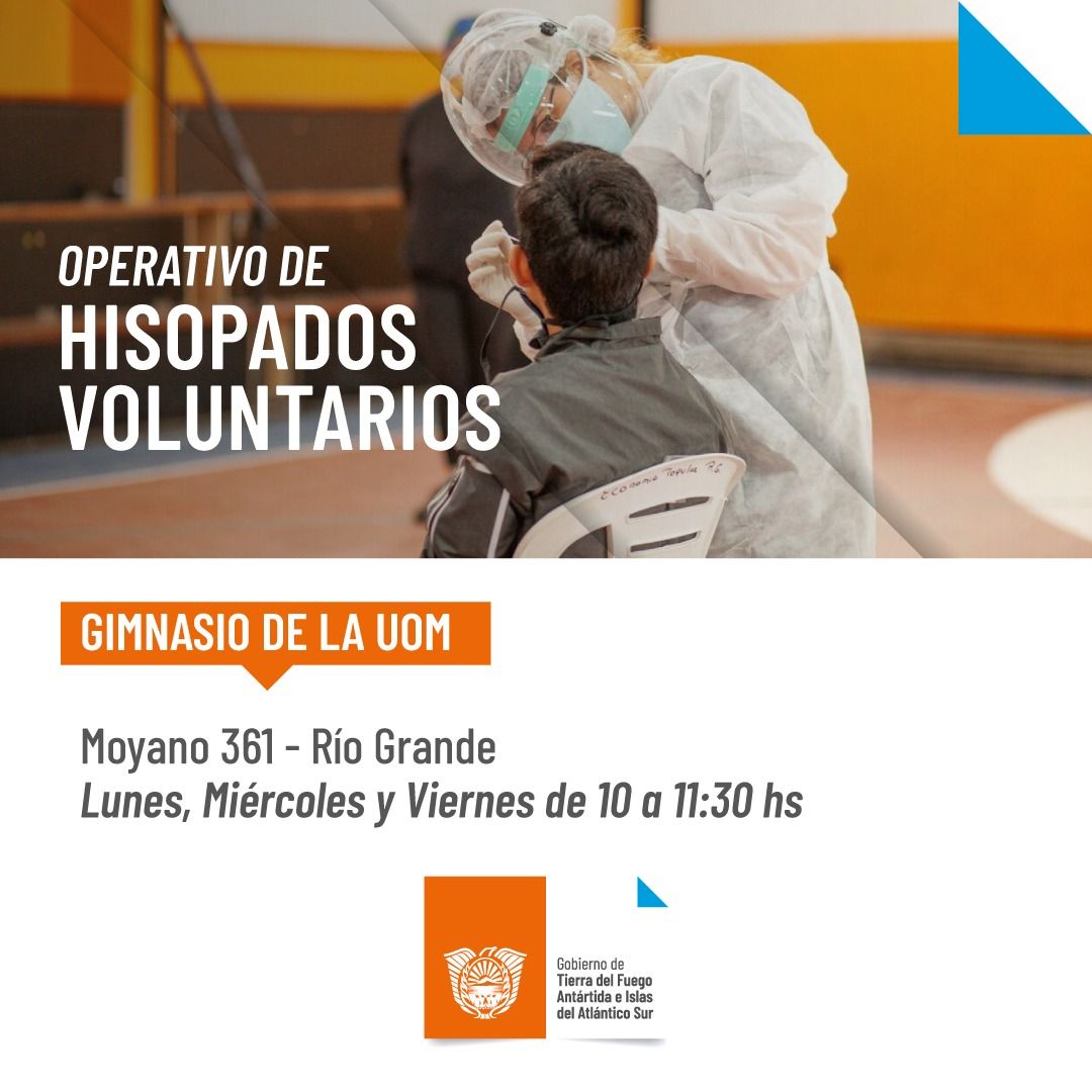 Cabe señalar que en ese lugar se realizan hisopados voluntarios, tanto a adultos como a niños, a partir de los 3 años.
