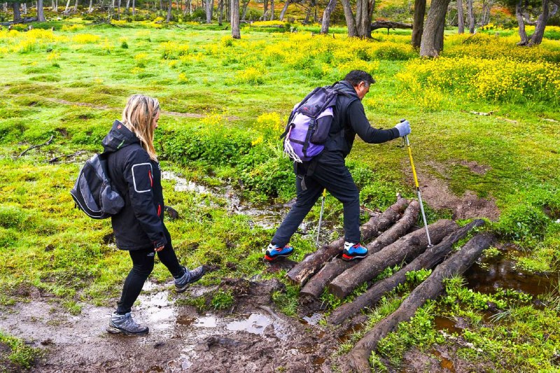 En torno al calzado debe ser apto para trekking, impermeables y con una suela que permita un buen agarre en las caminatas. El terreno en los bosques y valles fueguinos es difícil; la turba, barro, raíces y piedras sueltas pueden ocasionar serios accidentes si no se cuenta con el calzado apropiado. También es apropiado llevar guantes, gorro, bufanda o cuello térmico.