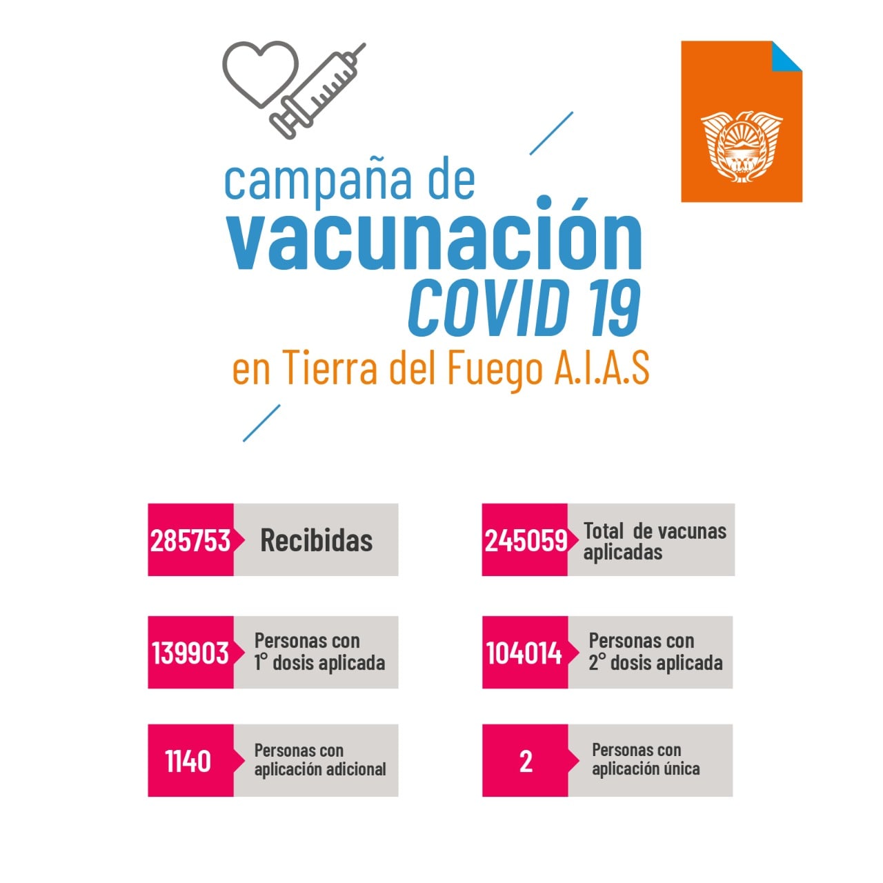 En cuanto al plan de vacunación que se está llevando adelante, la Provincia ha recibido 285.753 dosis de vacunas. Ya han sido aplicadas 245.059; 139.903 personas recibieron la primera dosis de las cuales 104.014 recibieron ambas. Asimismo se aplicaron 1140 dosis adicionales y 2 vacunas de aplicación única. (Datos del Monitor Público de Vacunación actualizados a las 5:27hs de esta mañana).