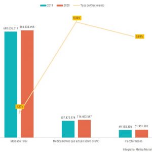 Estos medicamentos que son utilizados para tratamientos psiquiátricos muestran un crecimiento de un 6% en 2020, alcanzando las 51.951.691 unidades totales.