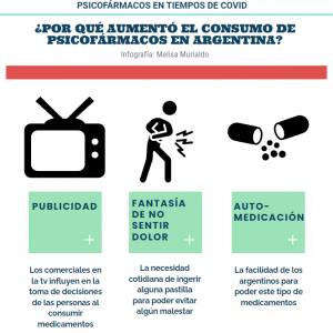 En Argentina, antes de la pandemia, se estimaba que 15 de cada 100 ciudadanos (casi 3 millones de personas) consumían drogas bajo receta. También, 2 de cada 10 personas que consumieron alguna vez tranquilizantes, lo hicieron con receta médica y luego continuaron por su cuenta. La razón del aumento de psicofármacos, de acuerdo a especialistas en salud mental, se debió en gran parte a los trastornos de la salud mental que trajo la Covid-19 como el insomnio y los problemas de sueño.