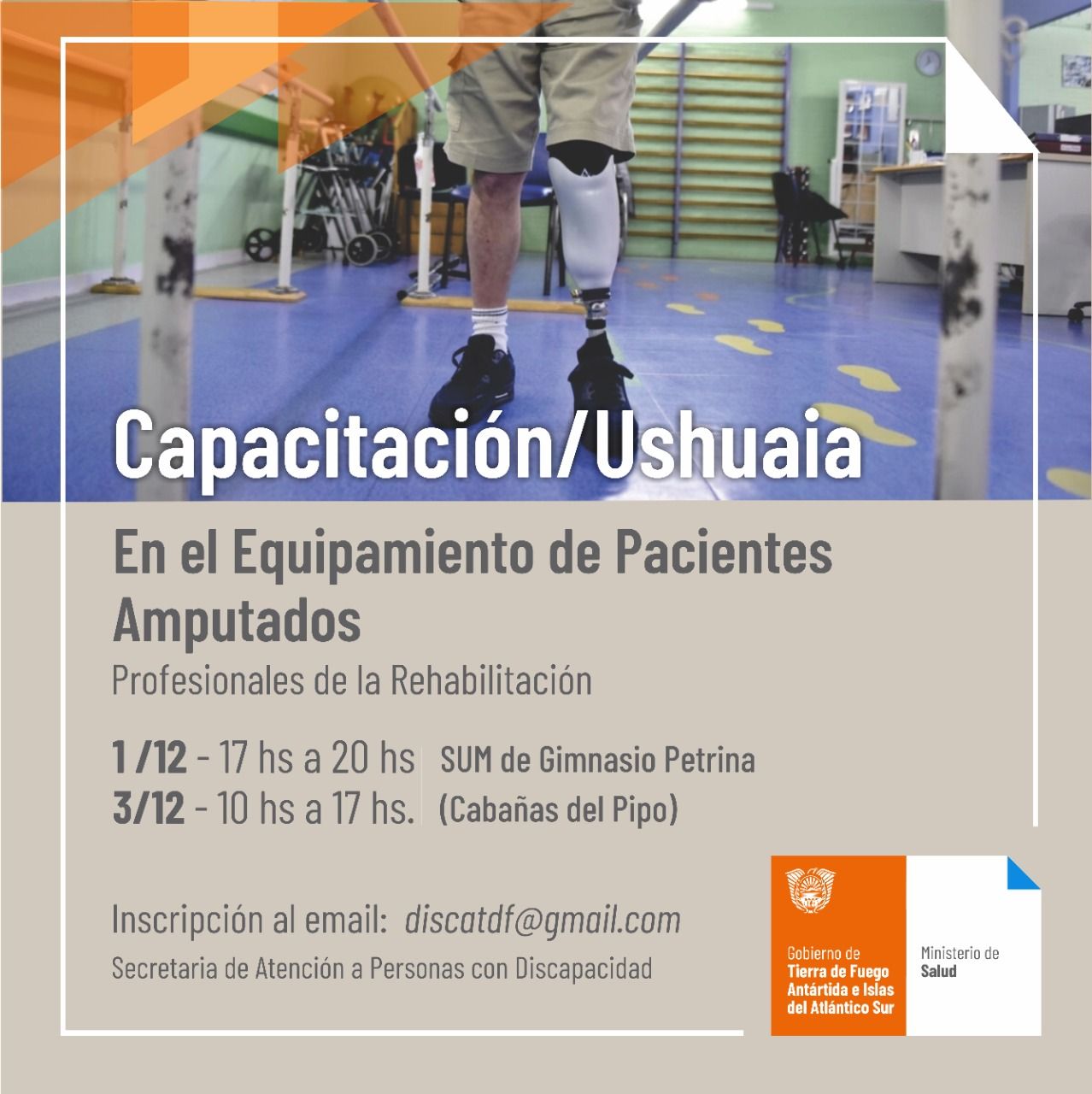 La Secretaría de Atención a Personas con Discapacidad anunció la realización –entre el 1 y el 3 de diciembre próximo- una Capacitación en Equipamiento Ortopédico para Amputados, en el SUM del gimnasio “Carlos Petrina” (Cabañas del Pipo), de Ushuaia.