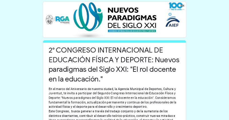 2° CONGRESO INTERNACIONAL DE EDUCACIÓN FÍSICA Y DEPORTE: Nuevos paradigmas del Siglo XXI: «El rol docente en la educación.»