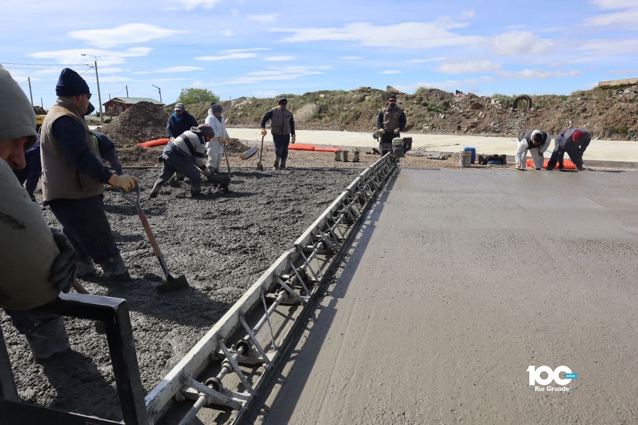 Rio Grande 18/11/2021.- En el marco del intenso Plan Integral de Pavimentación y Bacheo que el Municipio de Río Grande está implementando en toda la ciudad esta temporada, se están llevando a cabo los trabajos pertinentes al hormigonado de la calle Sarmiento, en el tramo comprendido desde 25 de Mayo en dirección a Juan José Pasos.