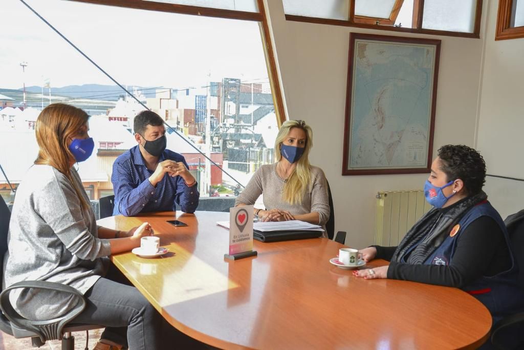 Ushuaia 19/11/2021.- El secretario de Turismo de la Municipalidad, David Ferreyra, junto a la coordinadora de Bienestar de Personal, Gabriela Borré, mantuvieron un encuentro con la directora de LightHouse Institute, Teresa Garcia Bejar, para analizar los avances en las capacitaciones al personal de turismo.