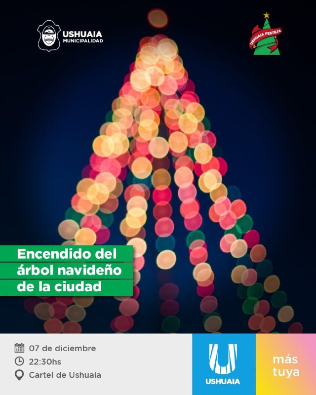 Será el martes a las 22:30 LA MUNICIPALIDAD DE USHUAIA INVITA AL ENCENDIDO DEL ARBOL DE NAVIDAD