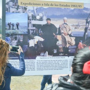 Puesto a consideracíón de la comunidad a partir de los aportes fundamentales de los curadores María Estela Mansur (Centro Chapman-UNTDF y CADIC-CONICET), Amandine Péquignot (Muséum national d’Histoire naturelle, UMR208 Paloc, IRD-MNHN), Vanesa Parmigiani y Hernán H. De Angelis (GIATMA-CADIC-CONICET / IDEIUNTDF), Maria Celina Alvarez Soncini y Anna Franch Bach (GIATMA-CADIC-CONICET), y los actores locales Gustavo Groh a cargo de Producción de la muestra y Ast Gigantografías con la impresión . La exhibición en Ushuaia se encuentra en el Paseo de las Rosas, “En este nuevo espacio de muestras al aire libre que dispuso el intendente Walter Vuoto y que inauguró la muestra de Anne Chapman, un espacio integrado a los Museos y espacios culturales, un verdadero paseo para disfrutar y que continuará con otras muestras más adelante”, dijo Calderón. Está compuesta por 15 paneles autoexplicativos, con imágenes y texto en una superficie individual de 2×1,5 m, dispuestas en paneles impresos en lonas resistentes y montadas en estructuras metálicas autoportantes.