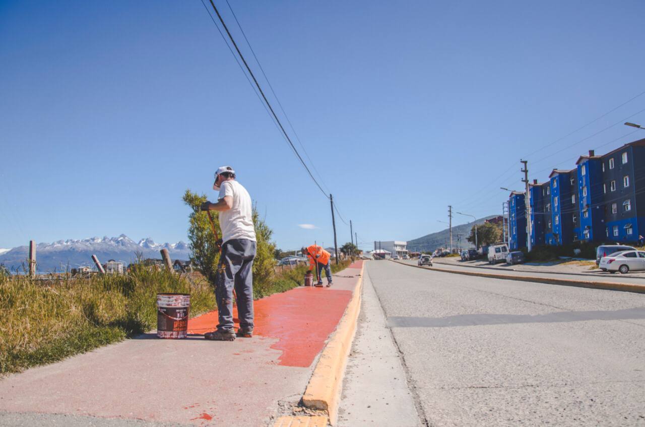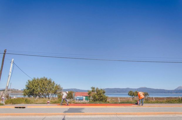 Ushuaia 22/01/2022.- Además de las mejoras en el bulevar de acceso al Aeropuerto Internacional de Ushuaia, la Municipalidad viene trabajando en el corredor que conecta al centro de la ciudad por la Av. Hipolito Yrigoyen. Desde la Secretaría de Planificación e Inversión Pública de la Municipalidad explicaron que los trabajos incluyen la reconstrucción de algunos sectores de veredas y sendas peatonales, pintura y marcación de cordones