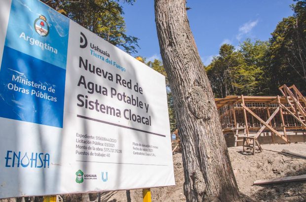 Ushuaia 20/01/2022.- Avanza la construcción de la cisterna en el sector del KyD que forma parte de la obra de red de agua potable para los barrios que lo conforman y que integra el Plan de Obras de la Municipalidad de Ushuaia en la presente temporada.