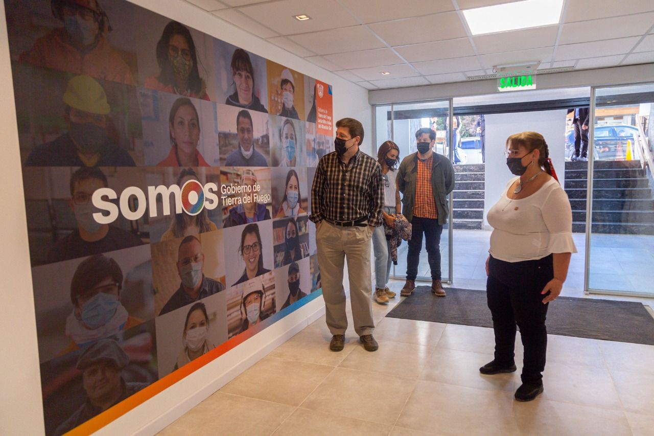 El Gobernador Gustavo Melella, acompañado por la Ministra de Obras y Servicios Públicos, Gabriela Castillo; recorrió la finalización de los trabajos ejecutados por la cartera ministerial en el edificio estatal.
