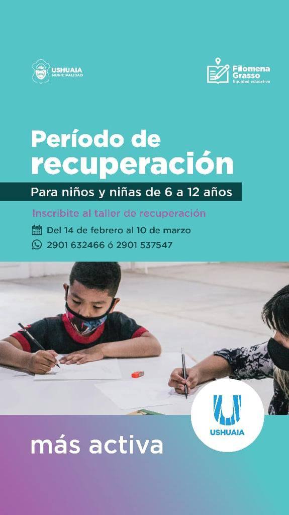 Ushuaia 15/02/2022.- La Municipalidad de Ushuaia, a través de la Secretaría de Cultura y Educación, dio inicio al taller de acompañamiento escolar “Filomena Recupera”, destinado a chicos y chicas de 6 a 12 años que adeuden materias del nivel primario. La actividad se lleva adelante en el Centro Cultural Actuar del barrio Monte Gallinero, de 14 a 16.