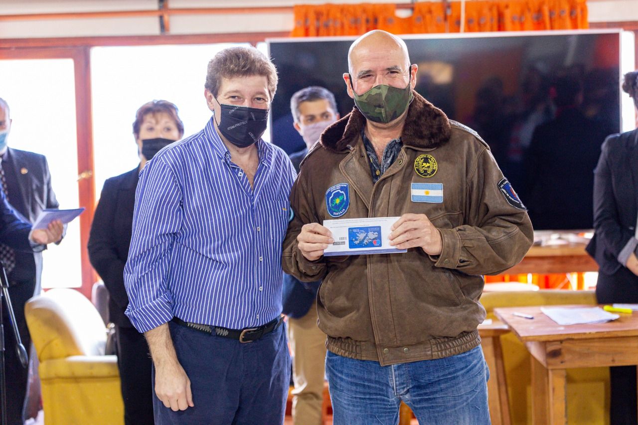 Durante el acto, las autoridades presentes, hicieron entrega del nuevo plástico a las y los excombatientes. Asimismo, el Gobernador; la Vicegobernadora y el legislador Federico Sciurano (presidente de la Comisión N°7 de Malvinas, Atlántico Sur y Antártida) recibieron, por parte del BTF, la tarjeta.