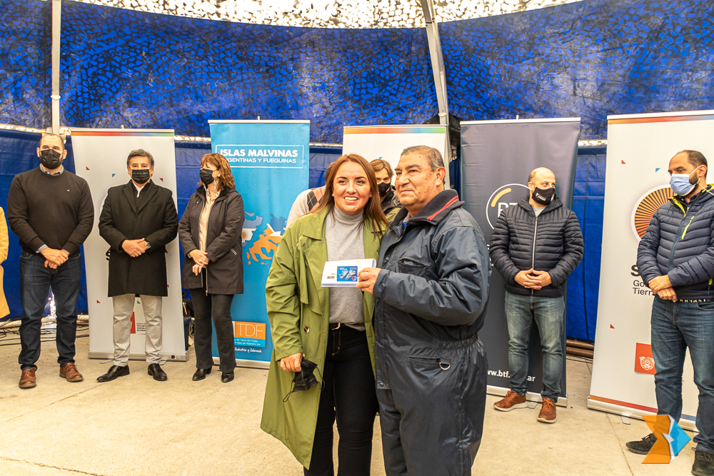 Río Grande, 26 de marzo de 2022.- La referente del FdT-PJ en la Legislatura fueguina, legisladora Andrea Freites, calificó como “un reconocimiento” la entrega de tarjetas de débito y crédito del Banco de Tierra del Fuego (BTF) a los excombatientes de Malvinas en la ciudad. Asimismo, resaltó “el tiempo récord” en que se instaló la Carpa de la Dignidad con la ayuda de los vecinos de Río Grande.