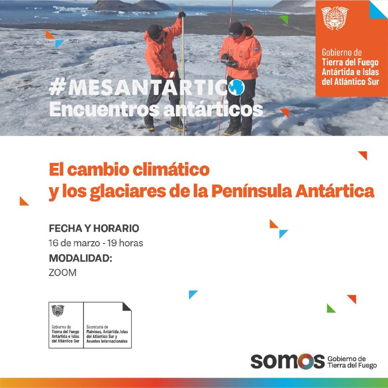 El miércoles 16 de marzo a las 19 horas, se llevará a cabo vía zoom, la charla “El cambio climático y los glaciares de la Península Antártica”. Se trata de una presentación del estado actual de los glaciares y las barreras de hielo de Antártida, donde el Instituto Antártico Argentino realiza investigaciones y seguimientos de los cambios dinámicos que están ocurriendo durante las últimas décadas.