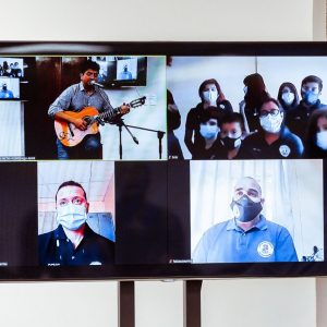 Durante el acto, el docente Bicontinental Ángel Esteban Reynoso interpretó la canción de su autoría “Rincón de mi Alma”, quien estuvo en la Base Esperanza junto a su familia en el año 2012.