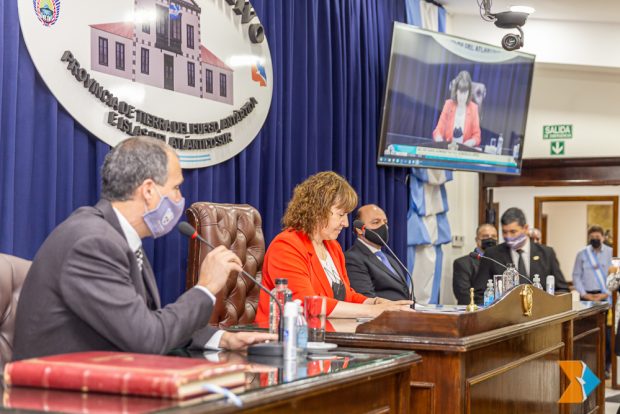 Ushuaia 01/03/2022.- Hoy se llevo a cabo el Acto Inaugural del 39° Periodo de Sesiones ordinarias de la Legislatura Provincial, donde el Gobernador Gustavo Melella brindo su discurso haciendo un repaso de la realizado hasta ahora. El mismo estuvo acompañado por los 15 parlamentarios, el Secretario de Gobierno de la Municipalidad de Rio Grande, Dr. Gaston Díaz, el Intendente de Tolhuín, Daniel Harrington, El secretario de Gobierno de la Municipalidad de Ushuaia, Omar Becerra, miembros del poder Judicial, Fuerzas de Seguridad, nacionales y provinciales, dirigentes gremiales y publico en general. El acto comenzó pasadas las 9 de la mañana de este martes.