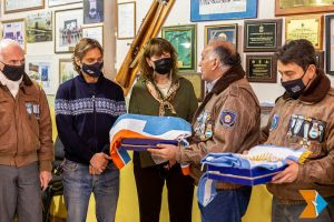 En el encuentro protocolar, donde además conocieron las nuevas instalaciones del edificio que funciona en avenida Alem 2008, hicieron entrega de banderas de ceremonias, que fueron recibidas por la Comisión del Centro, encabezado por su titular, VGM Conrado Zamora. Desde la institución, agradecieron el apoyo permanente de la composición de la Legislatura de Tierra del Fuego a través de numerosas herramientas como la Ley Thiago, que permite poner en valor la Gesta de 1982.