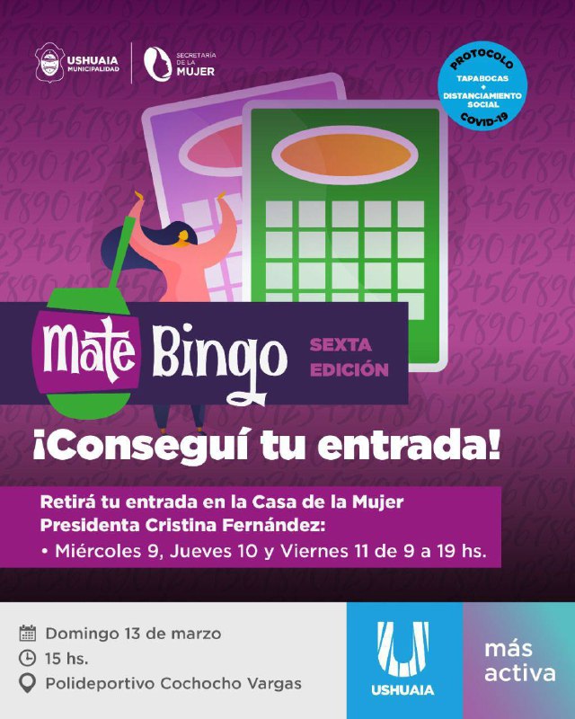 MES DE LA MUJER LA MUNICIPALIDAD DE USHUAIA INVITA ESTE DOMINGO AL MATEBINGO DE LA MUJER