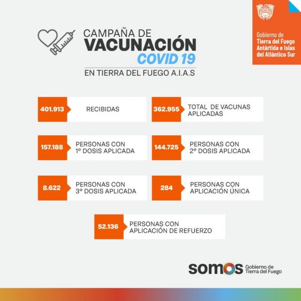 Asimismo se aplicaron 8.622 dosis adicionales, 284 vacunas de aplicación única y 52.136 dosis de refuerzo. (Datos del Monitor Público de Vacunación actualizados al día de la fecha).