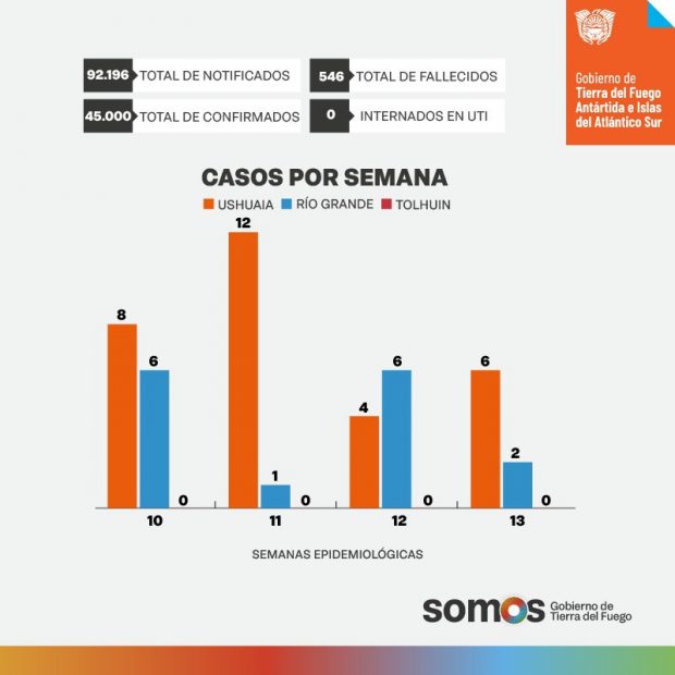 En cuanto a los resultados de las jornadas de hisopados que el Ministerio de Salud viene realizando en toda la provincia, del 27 de marzo al 2 de abril se detectaron 8 nuevos casos: 6 en Ushuaia, 2 en Río Grande y ninguno en Tolhuin.